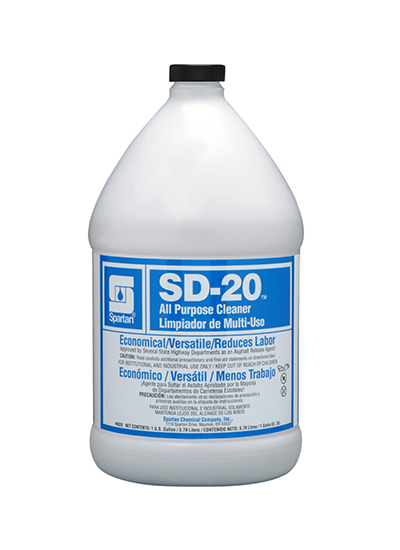 SD-20 es un limpiador para todas las superficies y se puede usar en pisos, paredes pintadas, carpintería, mármol, plástico, metal y otras superficies duras impermeables al agua.